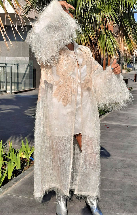 ÖZEL TASARIM OLARK HAZIRLANMIŞ ÜNLÜ BİR MARKANIN ÖZEL KUMAŞI İLE ÇALIŞILMIŞ TÜY DETAYLI BROKAR GECE VE GÜNDÜZ ŞIK DAVETLER DE GİYİLEBİLECEK TARZINIZI YANSITAN BİR KİMONO. 42 44 46 BEDEN İÇİN UYGUNDUR.. TEK DİKİLMİŞTİR. EŞİ YOKTUR.