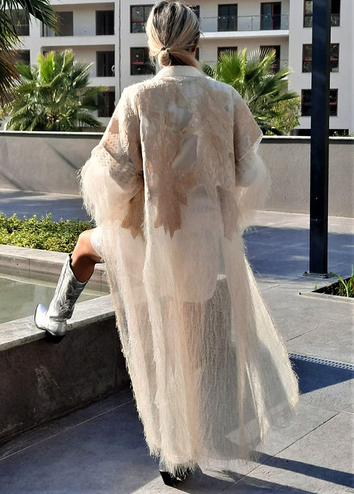 GİZMOSSE ÖZEL TASARIM TÜY DETAYLI KİMONO