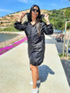 ÖZEL TASARIM GÜMÜŞ SİMLİ TÜL TRANSPARAN ELBİSE