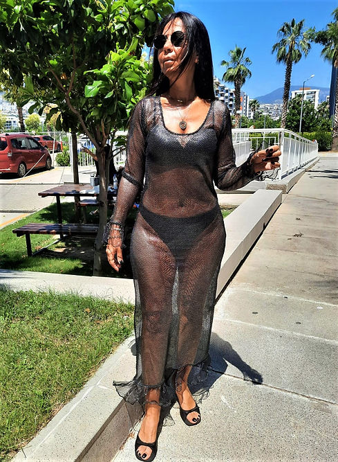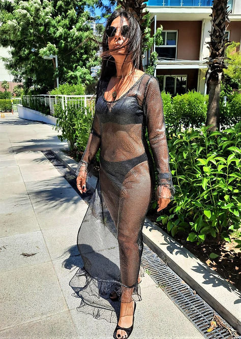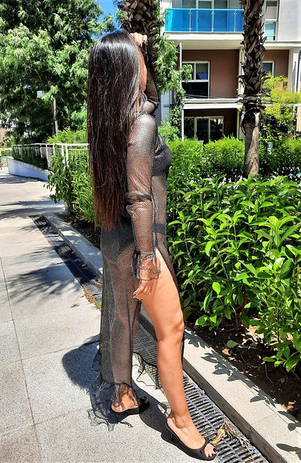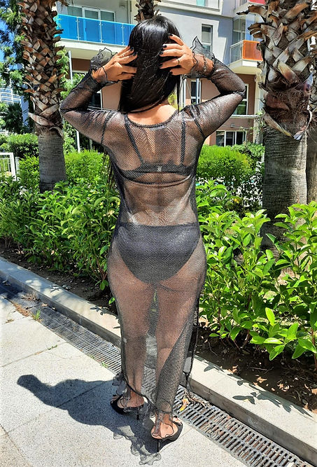 ÖZEL TASARIM SİYAH METALİK TANSPARAN FİLE ELBİSE