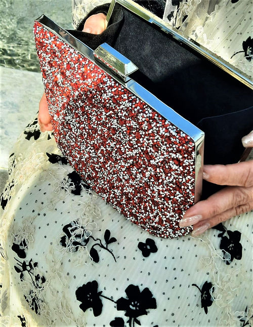 ÖZEL PIRIL PIRIL TAŞLI GECE İÇİN ABİYE ÇANTA. YEMEK VE DAVETLER DE GÖZ KAMAŞTIRACAK. BOYUTLARI EN 18 BOY 13 CM DİR. UZUN VE KISA GÜMÜŞ RENGİ METAL SAPI VARDIR.